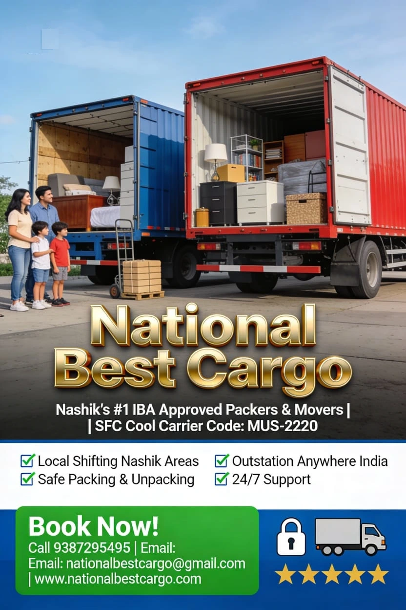 National Best Cargo stands as Nashik's premier IBA Approved Packers and Movers, proudly affiliated with SFC Cool Carrier (Code: MUS-2220) for unmatched reliability. Experience certified excellence in secure local and outstation shifting – from hassle-free home relocations to efficient office moves, all backed by industry-leading standards. Choose trusted professionals who ensure fast, safe, and damage-free transportation every time, making your move seamless and stress-free